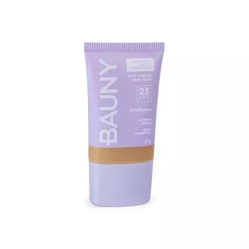 Os pigmentos da base da Bauny são triplamente tratados, o que colabora para que a cor da base não mude com o tempo de secagem, garantindo fidelidade ao tom observado na embalagem.